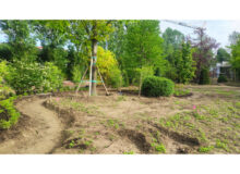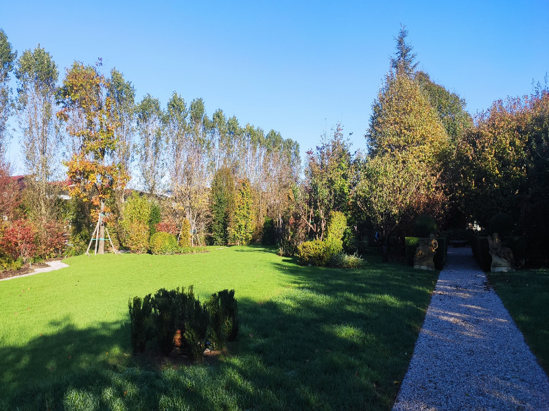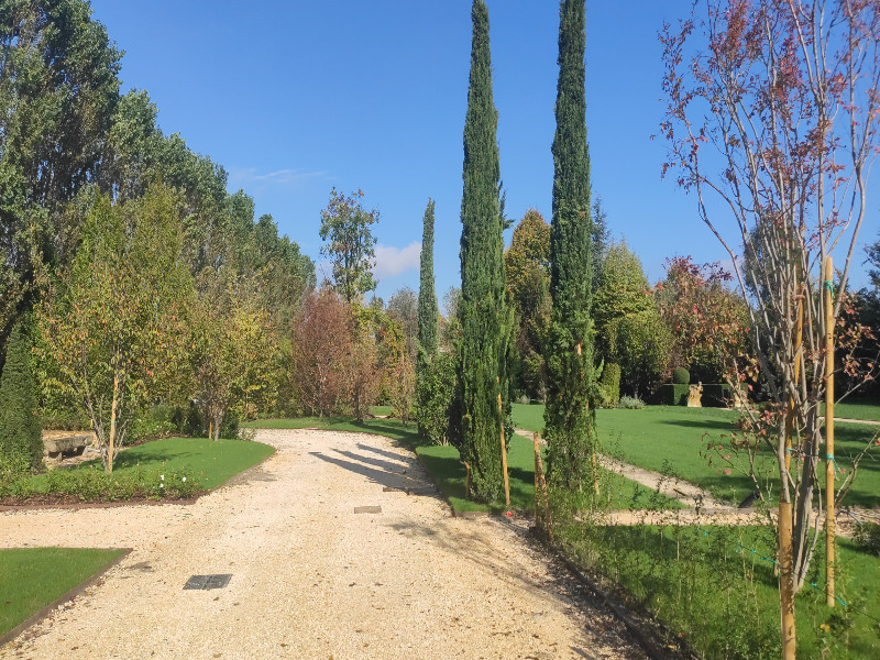 Piantumazione piante esemplari ad alto fusto, creazione viali ed aiuole, realizzazione ed installazione impianto irrigazione e antizanzare.